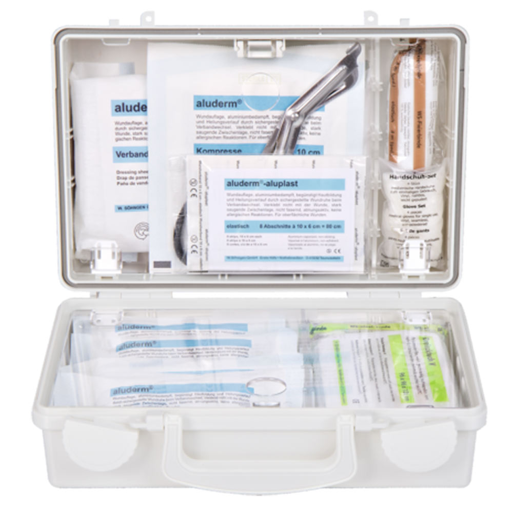 Verbandkästen DIN 13157 sind auch für Tätigkeiten im Außendienst einsetzbar.