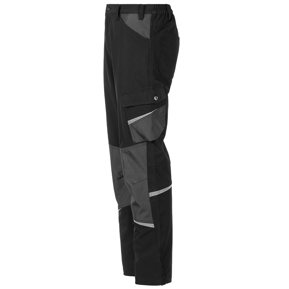 2 aufgesetzte Seitentaschen Oberschenkeltasche mit Patte und Druckknopf links Handytasche links doppelte Maßstabtasche rechts Gummizug im Bund Reißverschluss im Hosenschlitz Bund mit 7 Gürtelschlaufen und Jeansknopf Reflexbiesen als Sicherheitsausstattung 2 aufgesetzte Gesäßtaschen mit Patte und Klettverschluss