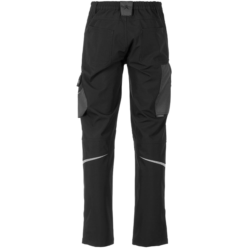 4-Wege Stretchmaterial mit geringem Gewicht strapazierfähige Polyester Oxford Besätze modische Passform hochgeschnittener Bund Schlitz mit Reißverschluss zwei seitliche Einschubtaschen mit Reißverschluss zwei Gesäßtaschen seitliche Cargotasche mit Reißverschluss Werkzeugschlaufe u. Zollstocktasche breite, verstärkte Gürtelschlaufen u. D-Ring Reflektierende Elemente für bessere Sichtbarkeit