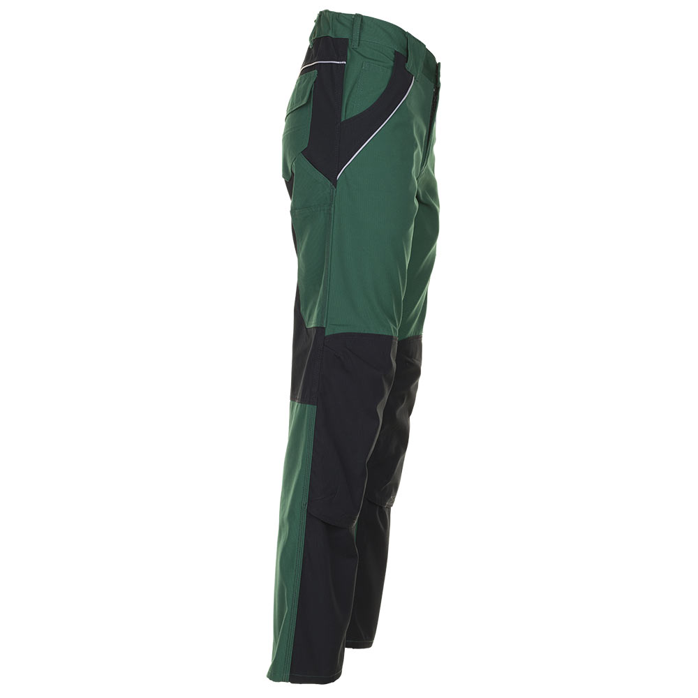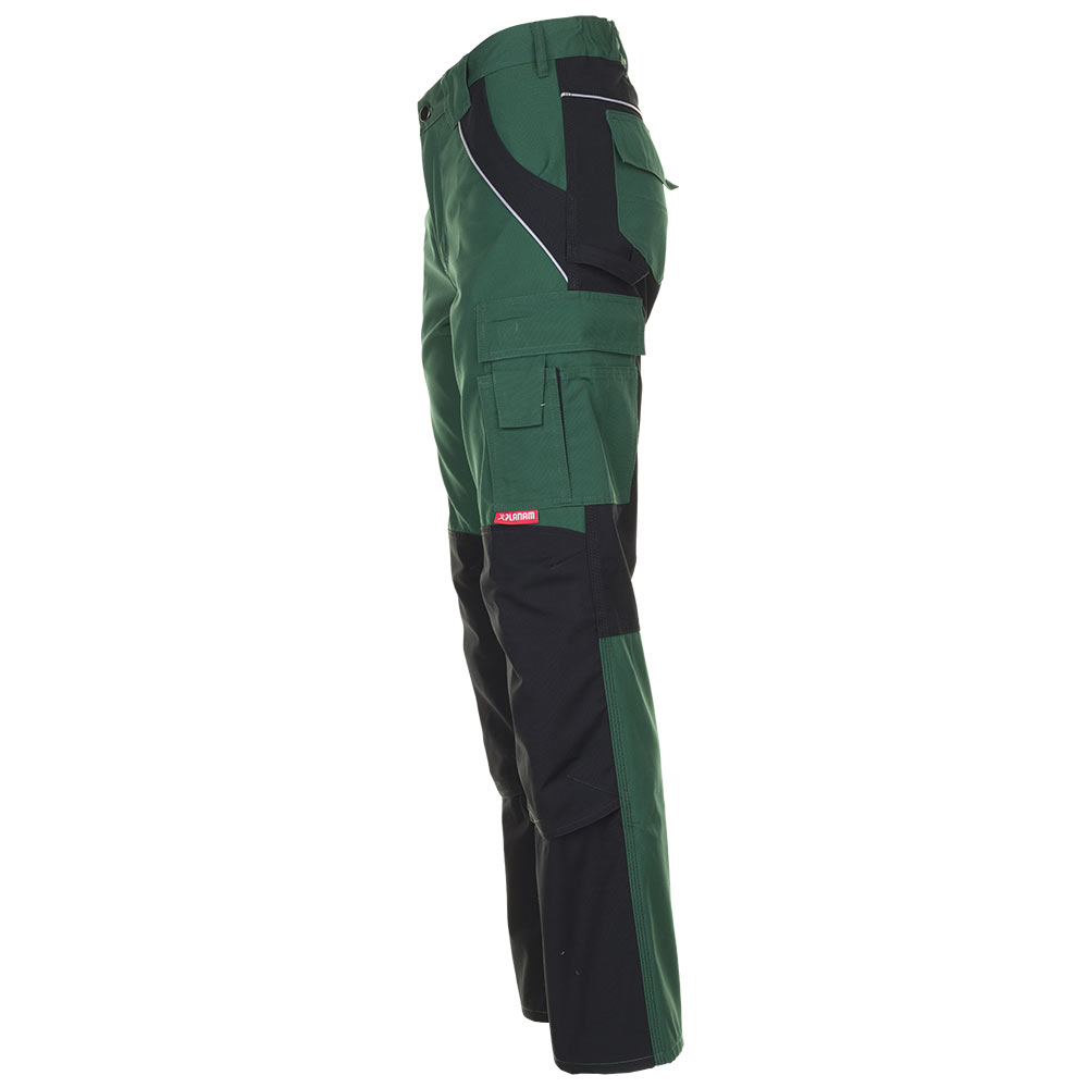 2 eingesetzte Beuteltaschen 2 aufgesetzte Knietaschen doppelte Maßstabtasche rechts links Oberschenkeltasche mit Patte und Klettverschluss Handytasche links Gummizug im Bund 2 Gesäßtaschen mit Patten und Klettverschluss Reißverschluss im Hosenschlitz Reflexbiesen Hammerschlaufe in Verbindung mit einem PLANAM Kniepolster (Art.-Nummer 9901027) als Knieschutz nach EN 14404 Typ 2, Stufe 1 zertifiziert